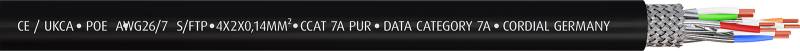 C'est le choix idéal pour les réseaux haute performance. Grâce à son double blindage S/FTP, il peut transmettre des signaux de classe de données CAT 7A avec une largeur de bande de 1000 MHz (1 GHz, Gigabit Ethernet). La gaine robuste en PUR protège efficacement le câble des influences environnementales et des contraintes mécaniques dans le cas d'applications mobiles en intérieur et extérieur.