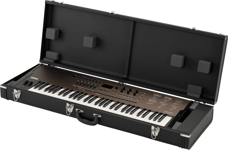 L'opsix SE est livré dans un étui rigide dédié, comprenant un espace pour les câbles et une pédale de sustain. Votre instrument peut voyager protégé, que vous le transportiez à une répétition en ville ou que vous le placiez pour une tournée.