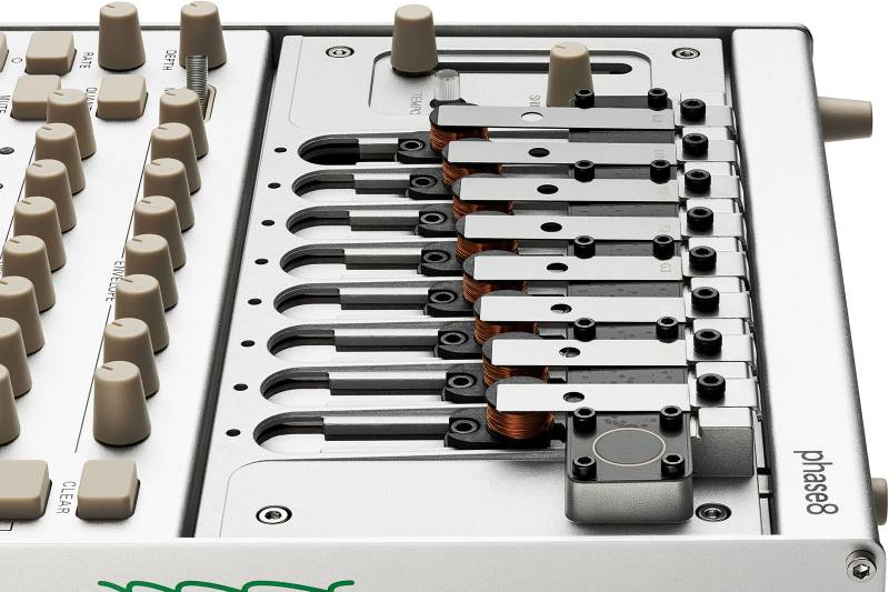 Le phase8 génère le son à partir de véritables résonateurs en acier mis en vibration. Vous obtenez des timbres organiques, instables et expressifs, qui réagissent au toucher, au jeu et à l’environnement.