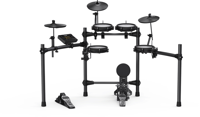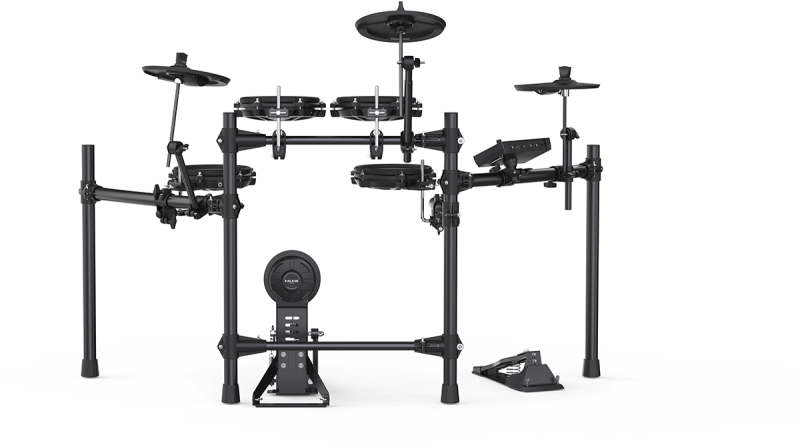 La NUX DM-210 est dotée de pads en peau maillée de très bonne manufacture, conçus pour offrir une sensation de jeu naturelle et réaliste. Ces pads sont silencieux, ce qui est parfait pour s’entraîner sans déranger l’entourage.